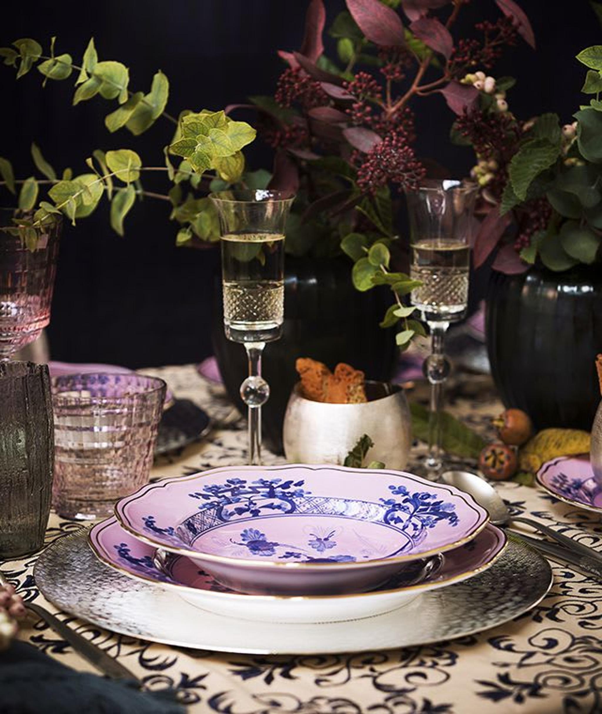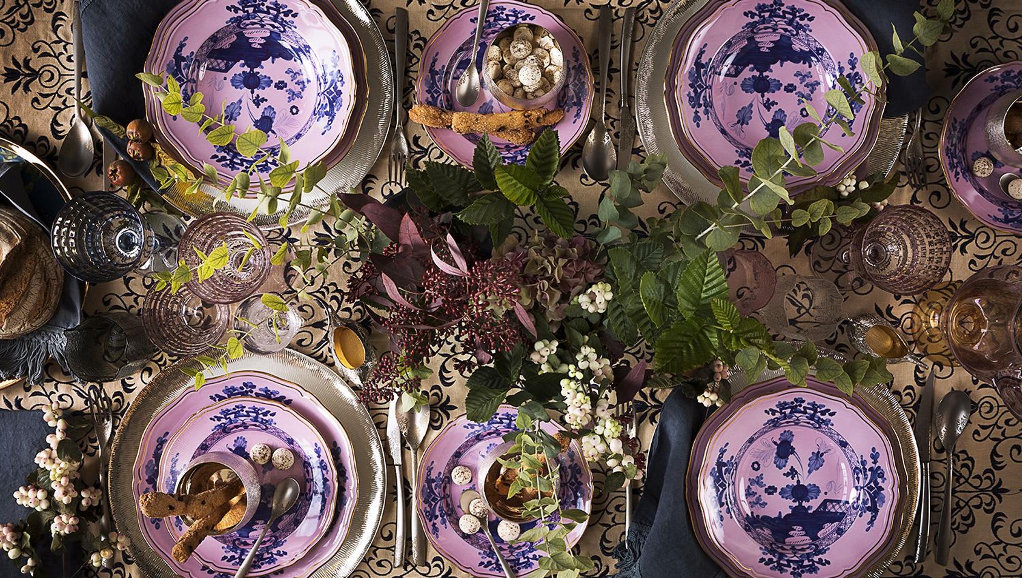 Organisez le dîner parfait dans l'esprit de la saison. Les teintes argentées, les céramiques peintes à la main et les finitions laquées permettront de dresser une table festive en y ajoutant une touche de luxe. Découvrez une variété d'artisans capables de créer des pièces uniques qui émerveilleront vos invités, comme Argentiere Pagliai, Zanetto et GINORI 1735.