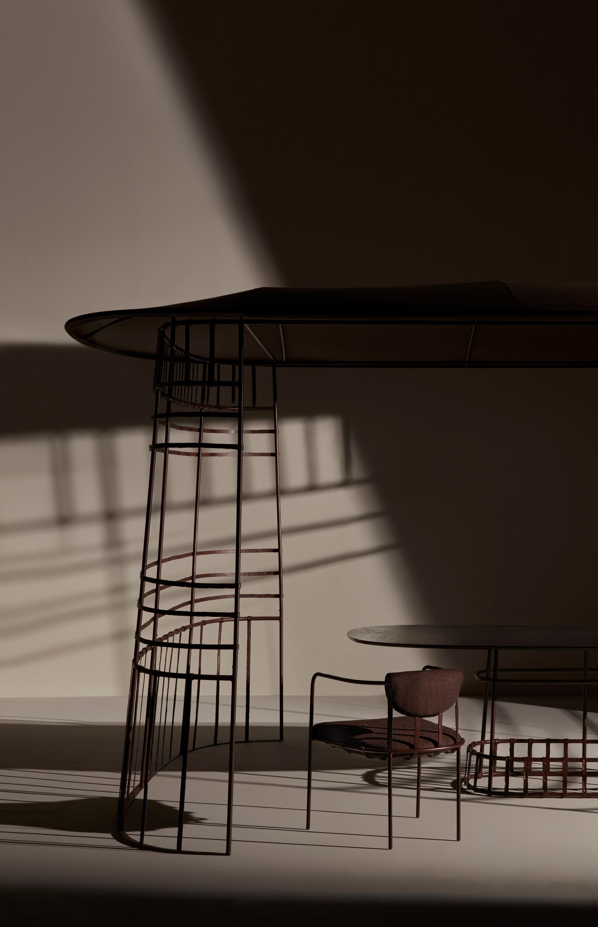 “Blending Habitats” is Dante Negro's vision of the outdoors, an invitation to rediscover an authentic connection with the environment and to reclaim a close connection with the landscape. Distinguished by primitive charm and visionary style, the collections are presented as icons of biomorphism: enveloping shapes, organic geometries, natural colors, and sustainable fabrics that integrate the collections’ design with the surrounding landscape. The primordial concept of archetypal living inspires present and future collections. Their design always starts from the gazebo - an outdoor icon and an extension of the domestic space - where landscape, architecture, and humans are in symbiosis: the habitat of man living outdoors. The interconnection between wrought iron and the outdoors will remain the beating heart of our projects, driving the brand's expertise to restore the utmost value of handcraftsmanship.