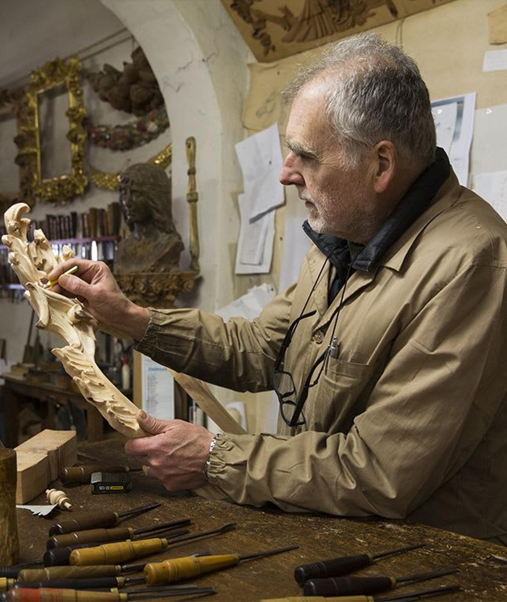 Daniele Nencionistarted his activity in 1980 in Santo Stefano, the world-renowned craftsmanship neighbourhood in Florence; immersed in such a vibrant atmosphere, his artisanal activity has become over the years synonymous with authentic Made in Italy. Daniele works with wood and specializes in the art of woodcarving by hand, creating stunning sculptures and furnishing pieces such as mirror frames, décor accessories and seatings. Each work is carefully put together following ancient traditions, that have been handed down from generation to generation in the Tuscan area.