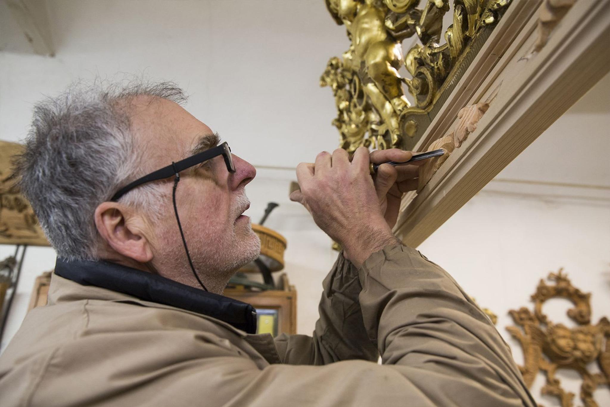 Meet Daniele Nencioni, the wood sculptor and artisan based in the famous craftsmanship neighbourhood of Santo Spirito in Florence since 1980. Through skillful woodcarving, Daniele creates stunning works such as handmade mirrors and wooden chairs, and has worked over the years on impactful projects such as the reconstruction of the Imperial castle in Moscow.