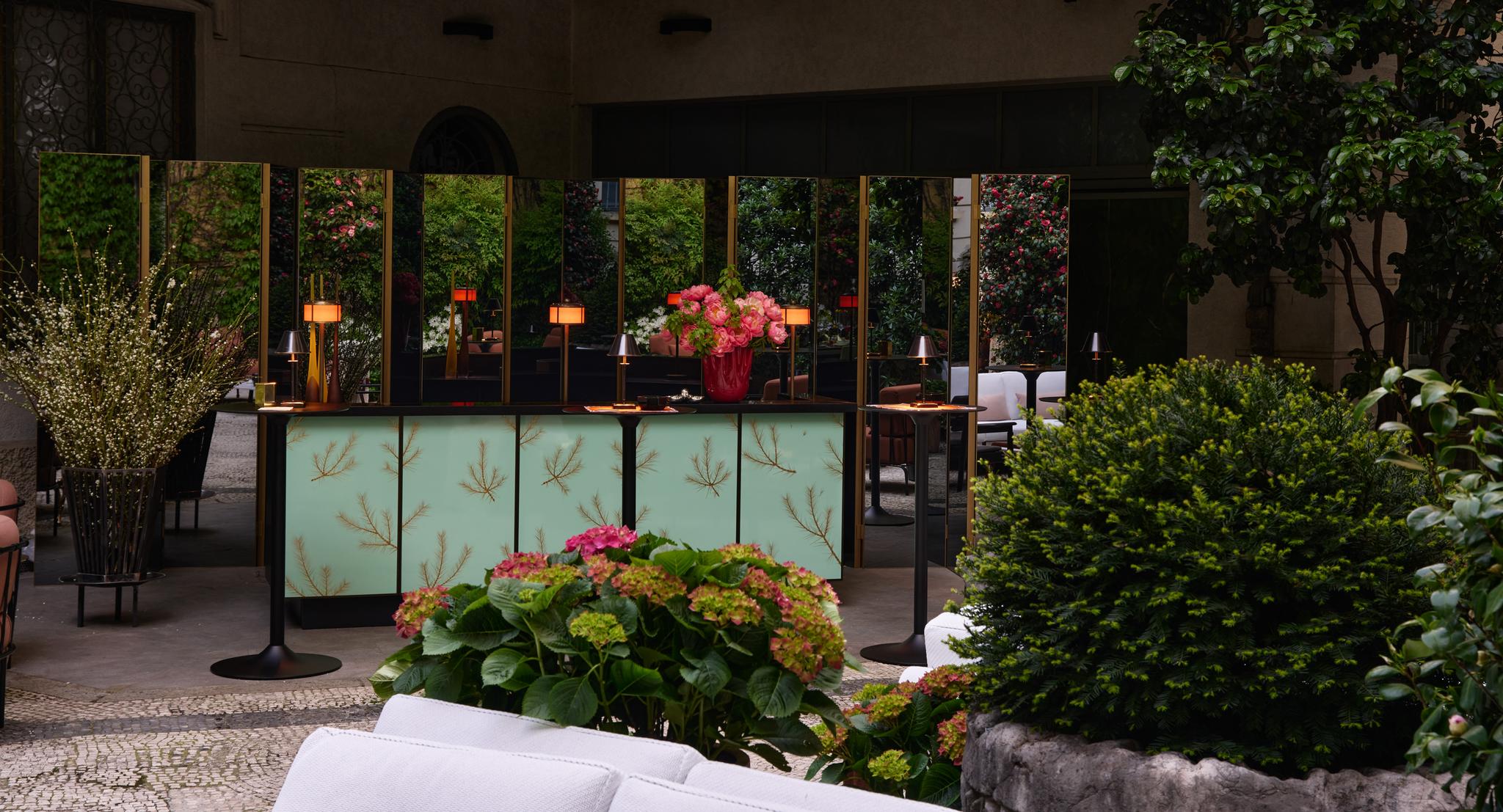 John et Christine Gachot considèrent chaque projet comme une expression individuelle. Pour L'Appartamento by Artemest, GACHOT a conçu la cour avec l'intention de créer un salon extérieur, mêlant harmonieusement le confort intérieur et l'esthétique extérieure. Avec différents groupes de meubles, y compris plusieurs espaces de détente, une table à manger et un bar personnalisé, la cour est à la fois intime et cohérente. La verdure luxuriante et les fleurs locales ajoutent encore une couche à l'atmosphère opulente. L'éclairage ajoute de la chaleur, avec des foyers qui invitent les invités à s'attarder, tandis que le choix de la palette de couleurs avec des tons riches comprenant des bruns chocolatés et des verts profonds, accentués par des fards et des bourgognes, crée divers accents captivants. Le design de GACHOT ne crée pas seulement un espace extérieur, mais une véritable extension de l'espace intérieur, où les invités se sentent accueillis et peuvent se détendre.